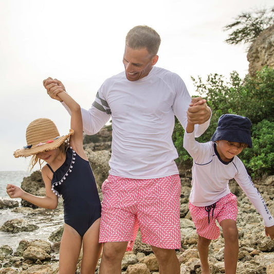 Snapper Rock- Mens Grey Pink Block Stripe Boardies