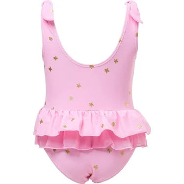 Snapper Rock- Pink & Gold Star Frill Skirt Swimsuit