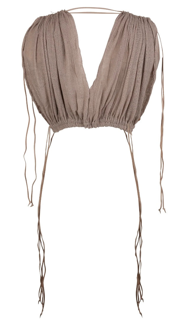 CHIOPLE animates your spirit as a dynamic top in the CARAVANA collection. With adjustable leather ties at the shoulders, mold CHIOPLE to embody the aesthetic of your changing desires.