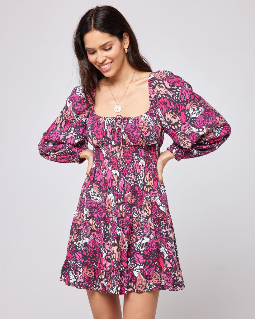 This mini was made for making an entrance. Designed with an adjustable drawcord and adorned with bracelet length balloon sleeves and a tiered bottom, the Cassidy Dress keeps it fun and flirty on any given day.